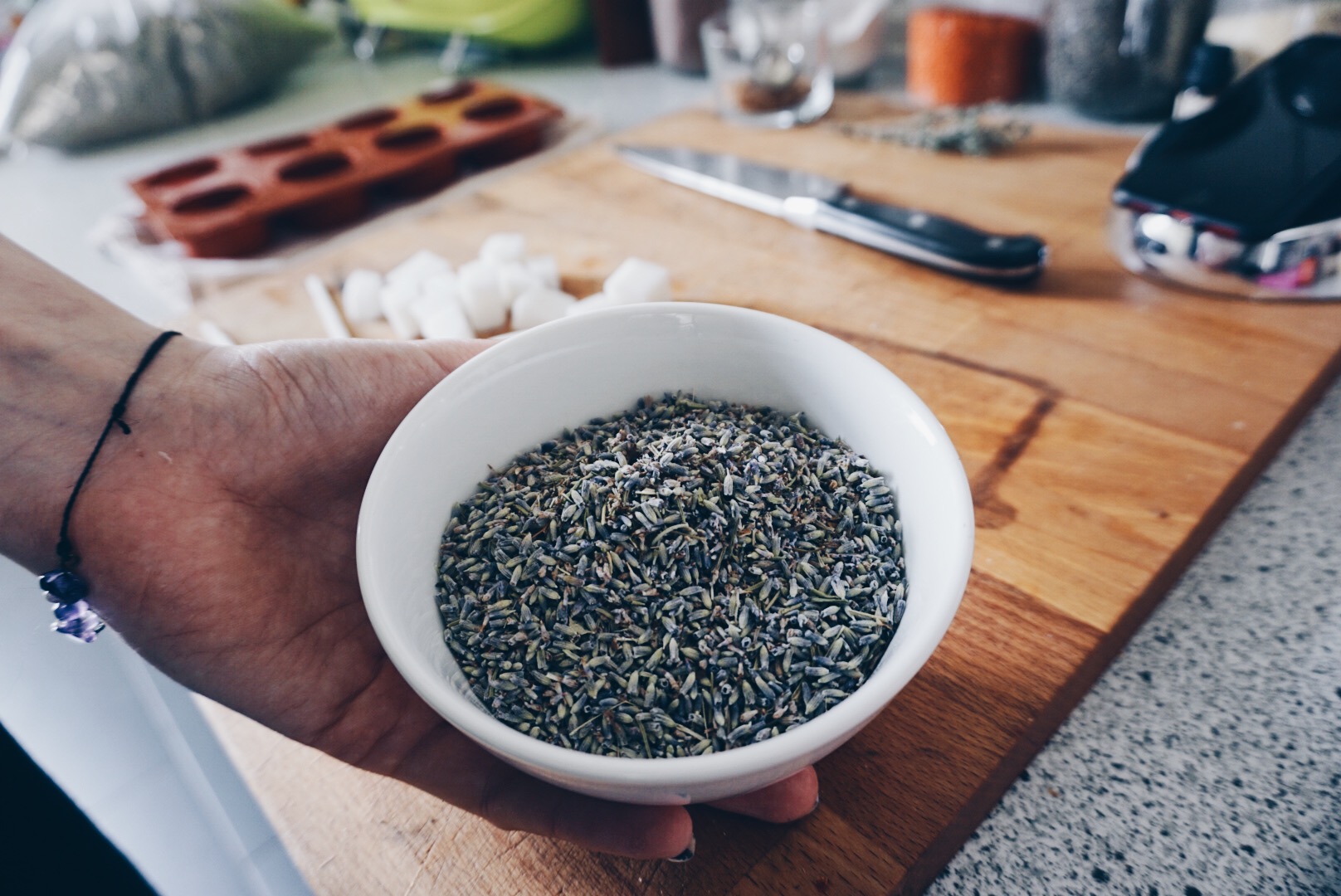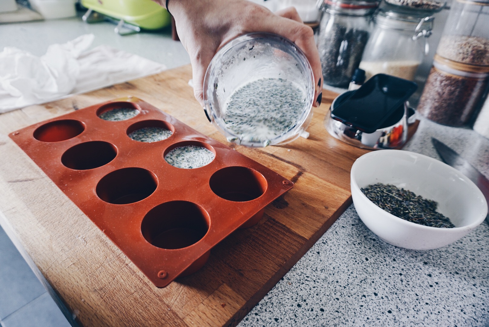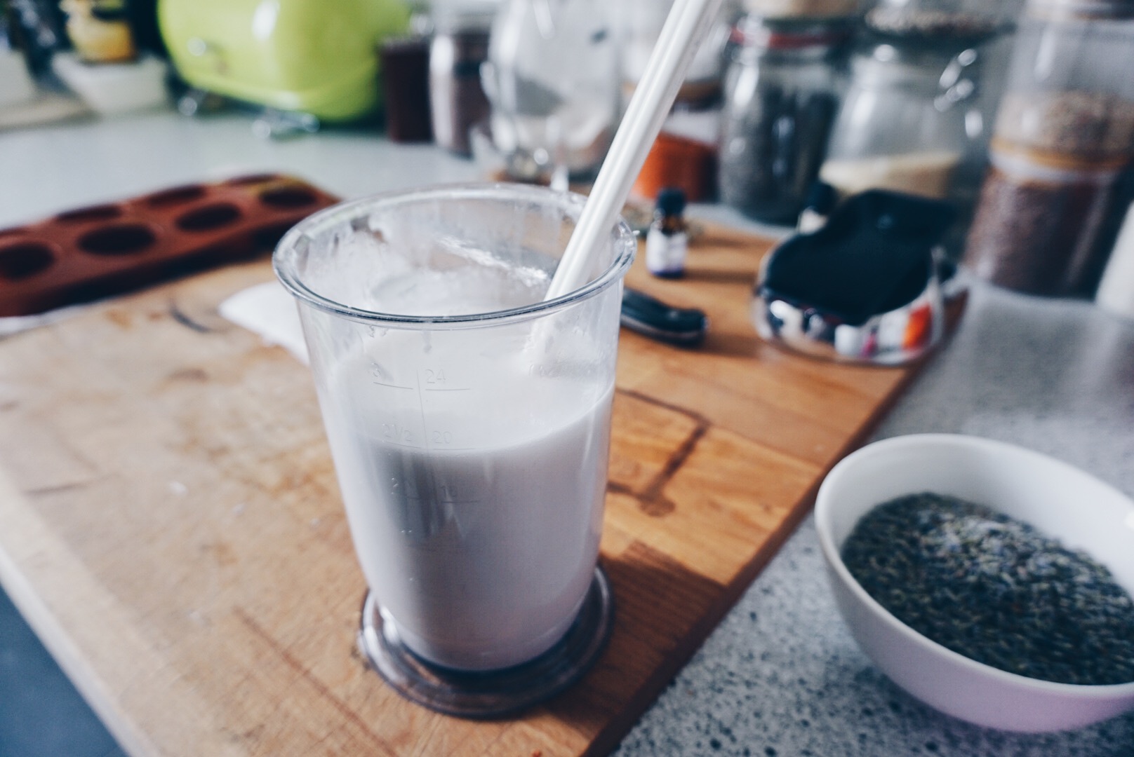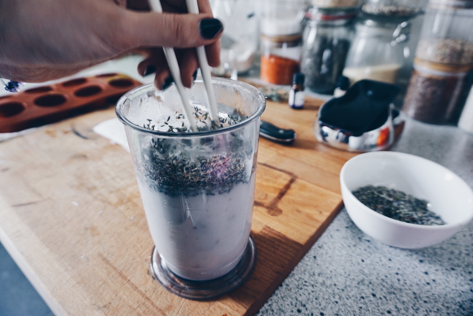 Ich liebe Lavendel. Ich weiß nicht warum aber die blauviolette Farbe der Blüten und der tiefe herbe Geruch der ätherischen Öle in der Pflanze verbinde ich mit Wohlsein und da auf meiner Hochzeit anstelle von Reis Lavendel gestreut wurde, habe ich noch einiges an Lavendelblüten übrig (wer hätte gedacht das 1kg Lavendel viel zu viel ist..) und so war es naheliegend eine Lavendelseife zu machen.