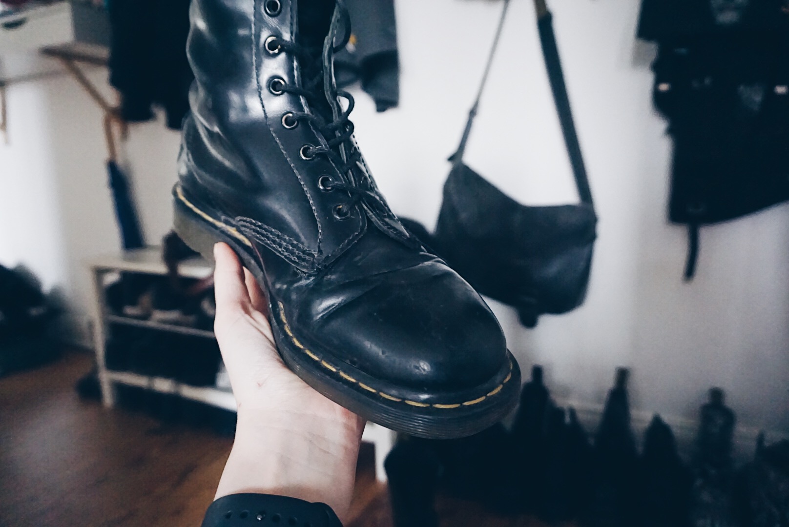 Ich bin mir nicht sicher warum, aber ich war unfassbar aufgeregt bevor ich mir mein erstes Paar Docs kaufte. Ich hatte extra Geld gespart und mir von einem ehemaligen guten Freund gut zureden lassen, habe ganz sicher jedes YouTube Video und jeden Blogpost zum Einbrechen dieser Schuhe angesehen und war mir sicher, dass ich dem gewachsen war. Ich wollte endlich weg von Chucks, die ich jedes Jahr neu kaufen musste. Weg von Vans, die jeden Fuß wie Lulatsch aussehen lassen und hin zu einem Stiefel, der mir bleiben würde. Ein Stiefel der auch ein Statement ist und meinen bisherigen Kleidungsstil bricht.