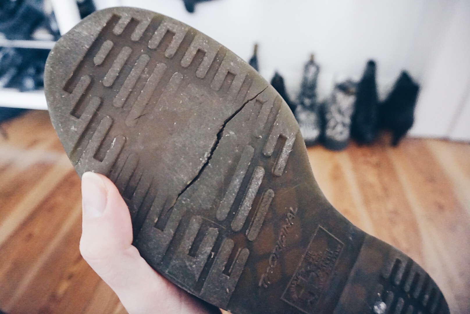 Natürlich fallen meine Schuhe nicht unter die bereits abgeschaffte Martens for Life policy und natürlich gibt es in Deutschland, soweit ich recherchieren konnte, niemanden der die Sohle ohne weiteres austauschen kann. Auch in Groß Britannien werden Sohlen selten ausgetauscht auch wenn das Leder an sich noch gut ist. Ich werde demnächst mal gucken ob es einen Schuster gibt, der vielleicht noch ein zwei Jahre aus meinen liebsten Schuhen holen kann und auch die Lasche wieder annäht. Trotzdem will ich mich nicht darauf verlassen, denn wenn das, was man liebt kaputt geht, wird einem bewusst wie viel es einem wert war und meine Dr. Martens Stiefel waren die letzten Jahre das, was mich durch mein Leben begleitete.