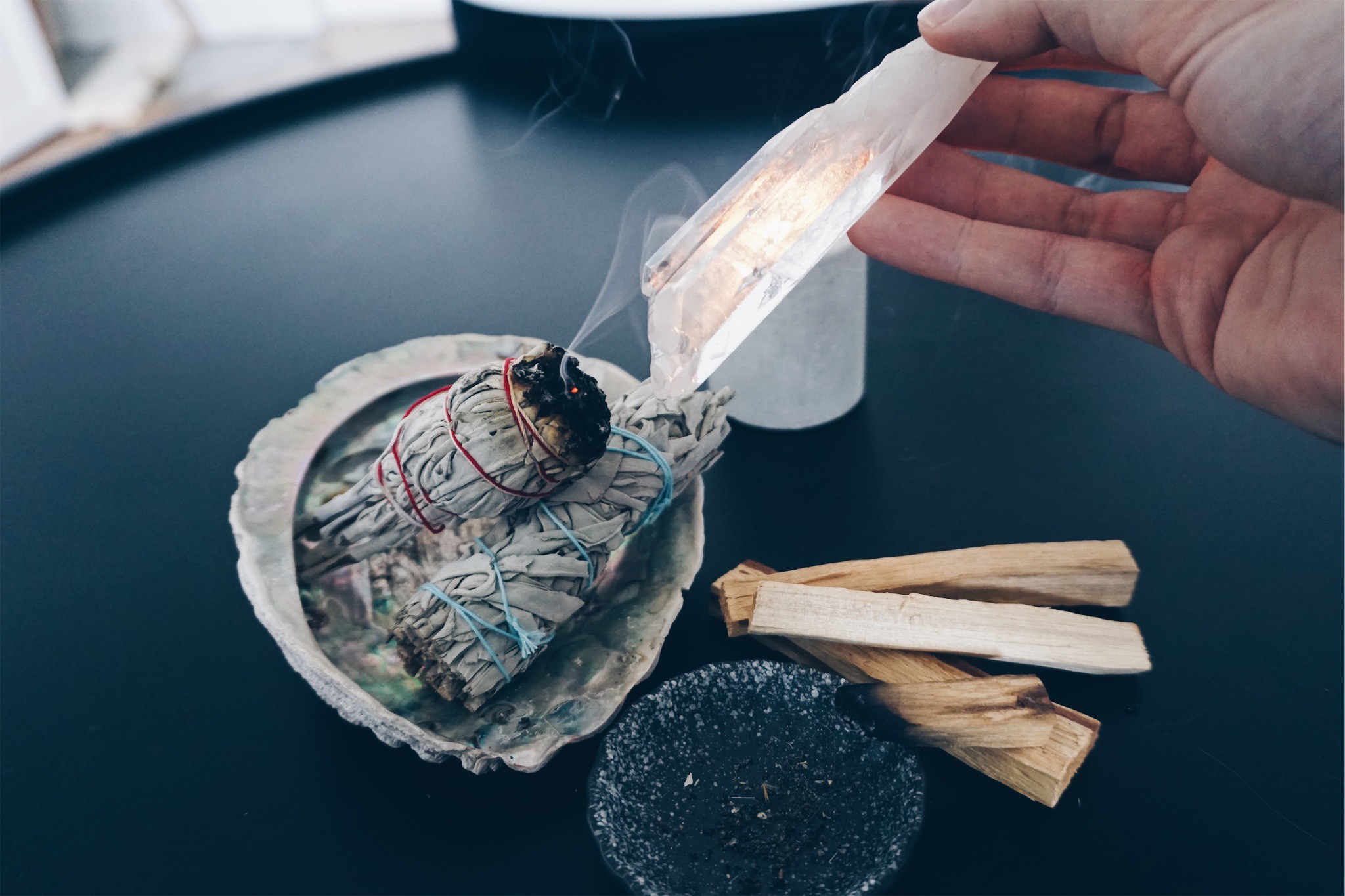 Aufgrund der kulturellen Aneignung dieser Praktik und der verwendeten Pflanzen möchte ich euch, sofern ihr nicht Ureinwohner Nordamerikas seid, darum bitten andere Möglichkeiten des Räucherns zu wählen um die Kultur, aus der das Räuchern auf diese Weise kommt zu respektieren. Nach weiteren eigenen Recherchen werde ich zukünftig weder mit Salbei noch Palo Santo Hölzern räuchern.