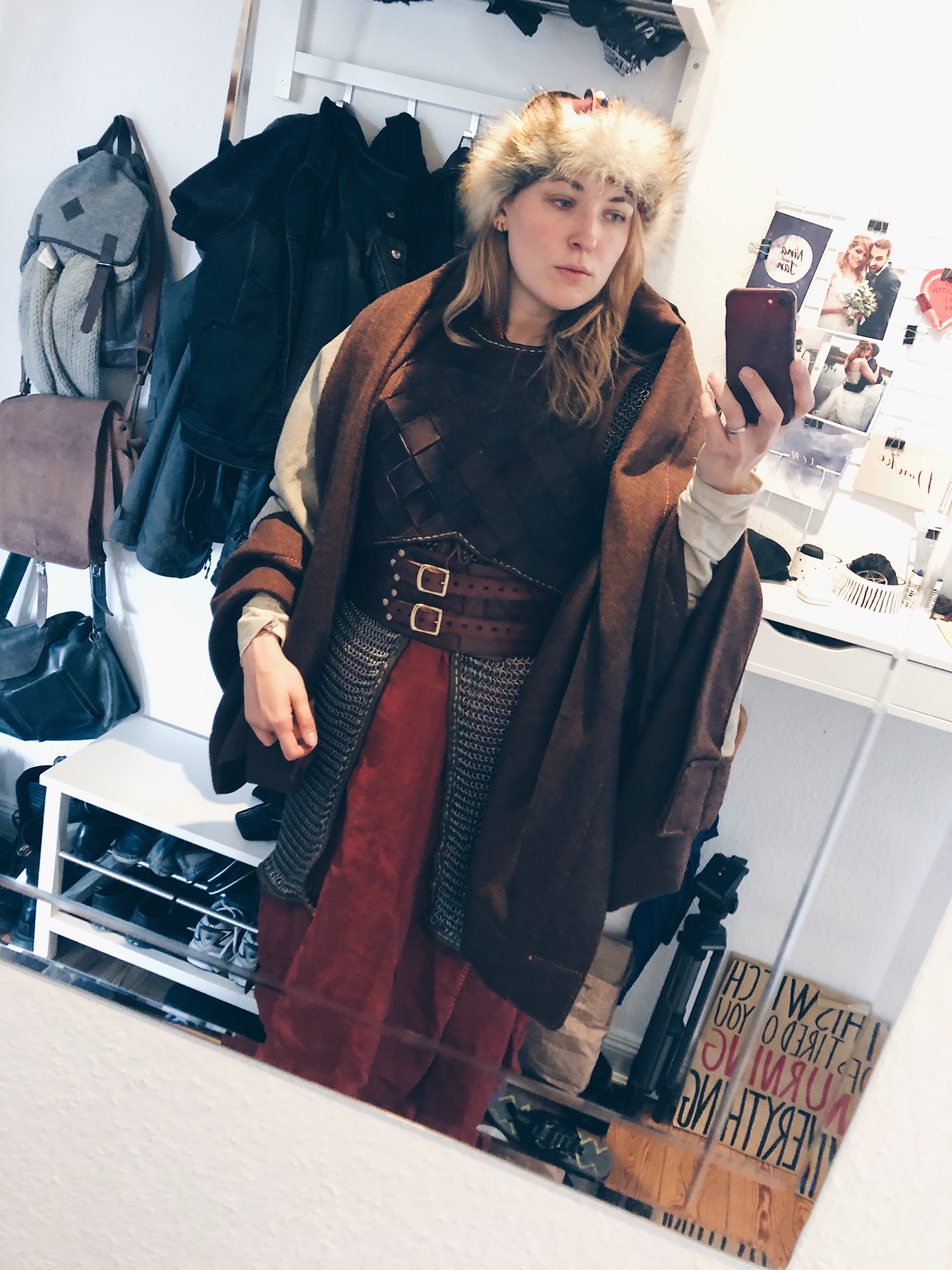 Ich habe im Rahmen dieses Hobbies so unfassbar viele tolle Handarbeiten gemacht, die ich alle gar nicht veröffentlichte. Ich hoffe im Rahmen des Blogs ein wenig mehr darüber schreiben zu können und auch wieder mehr darüber auf Instagram berichten zu können, wenn es mich zwickt und ich mich für eine Woche kopfüber in aberwitzige Projektideen verrenne. Immerhin habe ich jetzt ein Kettenhemd mit Leder umsäumt, eine Lederrüstung umgestaltet, unzählige Tuniken, Kleider und Hosen genäht, Socken, Mützen und Handschuhe genadelt aber auch wieder gestrickt, Seife gegossen, Schmuck geknotet, geflochten und gebogen. Ich werde nicht müde zu erschaffen und hoffe nächstes Jahr auch größere Projekte anzupacken. Ich brauche dringend eine dieser Wikinger Holzkisten.. oder fünf..
